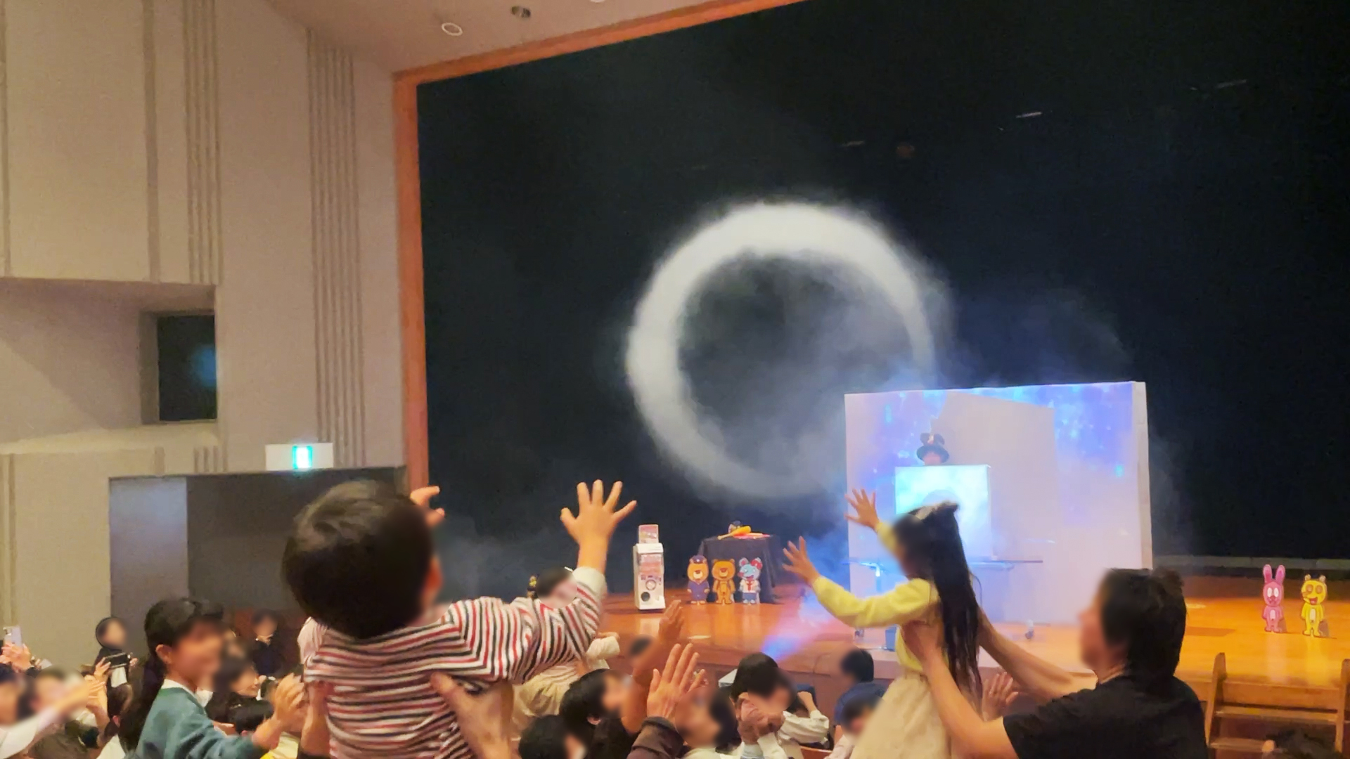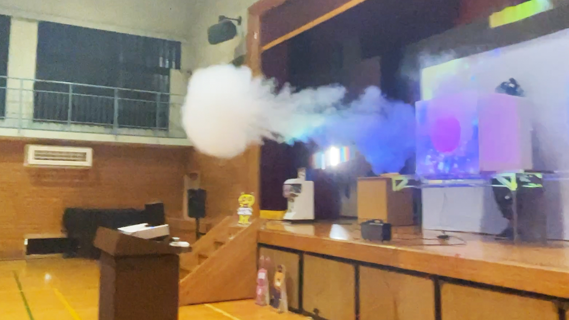 サイエンスショーでおなじみの空気砲が、プロジェクションマッピングで驚きの進化!迫力満点の演出に園児たちも釘付け!(※安全な水溶性スモークを使用します) - ⑨エンディング/即興スライドショー