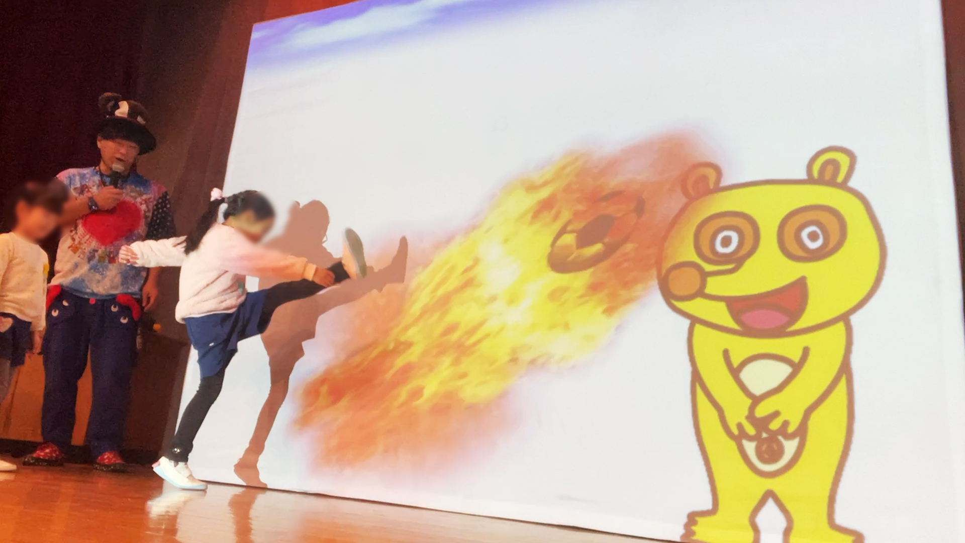 「見てるだけじゃつまらない!」そんな園児たちのために、全員が参加できる体験型コーナーをご用意! スクリーンに映し出されたキャラクターに触ったり、ボールを投げたり、自分のアクションで映像が変化する不思議な体験に、園児たちは目を輝かせます。「僕もやりたかった…」なんて言わせません!