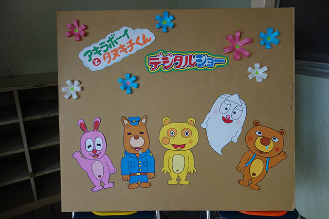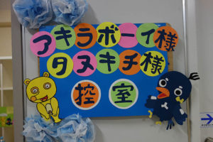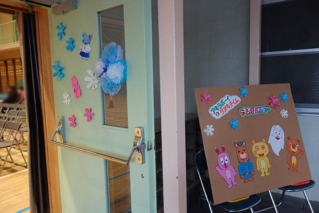 反対側のドアには、同じく折り紙のタヌキチくんたち!