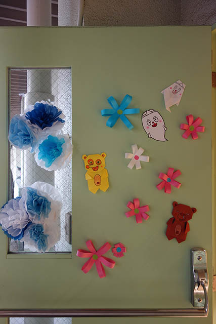 横のドアには、折り紙で折ってくれたウサオやネズコちゃんが!