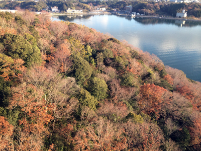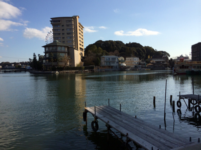 舘山寺は軽い山になってて、山を登った後に、下って崖の方に降りて行くと。
