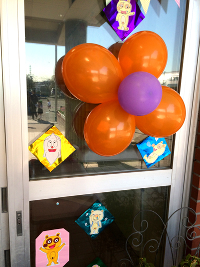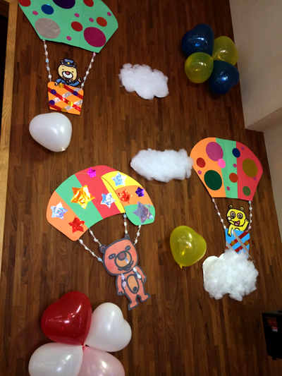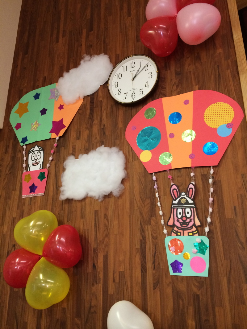 気球に乗ったタヌキチくん達!