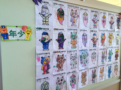 中に入ると子ども達が描いた塗り絵ギャラリーが☆