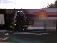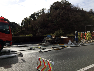 このトラックが道路の真ん中で燃えてたみたい(((゜д゜;)))