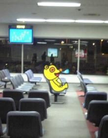 空港に着いたら、タヌキチ君もお疲れで