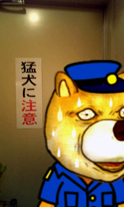 後ろの文字「猛犬に注意」が、