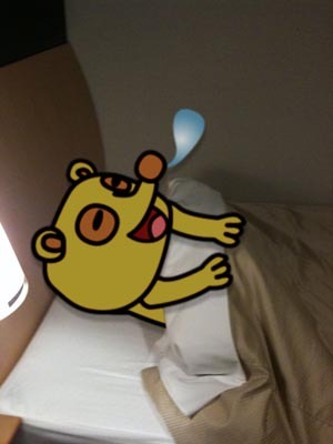 もちろんホテルではタヌキチくんにベッドを取られ…。