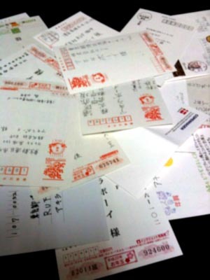 事務所にしばらく行ってなかったので、事務所に届いてた分の年賀状がたまってて、今さらながらやが受け取ったのだー(笑