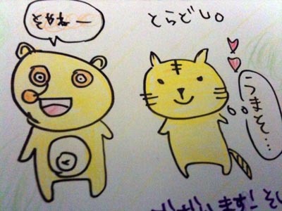 私、何度も言ってますが、絵が最強に苦手なのです。。。(:_;)でも最近は、タヌキチ君を、学級日誌とか、友達のノートに書いてますよww