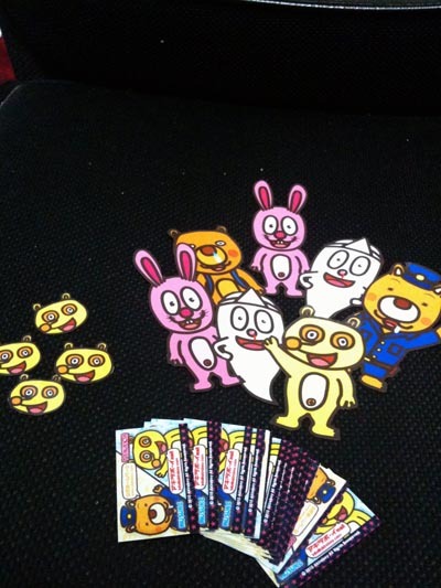 以前配ってた四角ステッカーと全身ステッカーとタヌキチ顔面ステッカーw