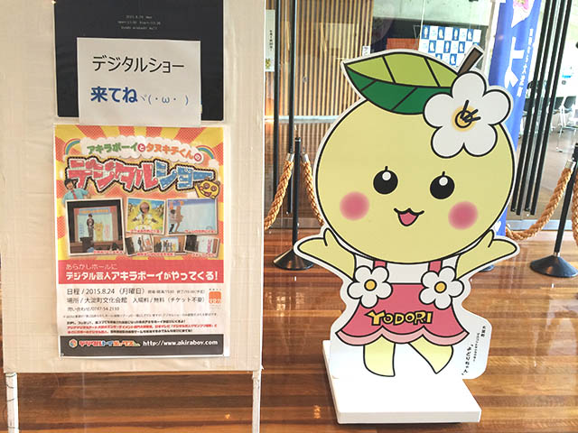 こちら大淀町のキャラクターでもあるよどりちゃんがアキラボーイのポスターを紹介してくれてるよw