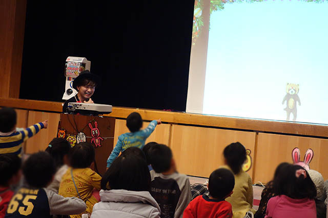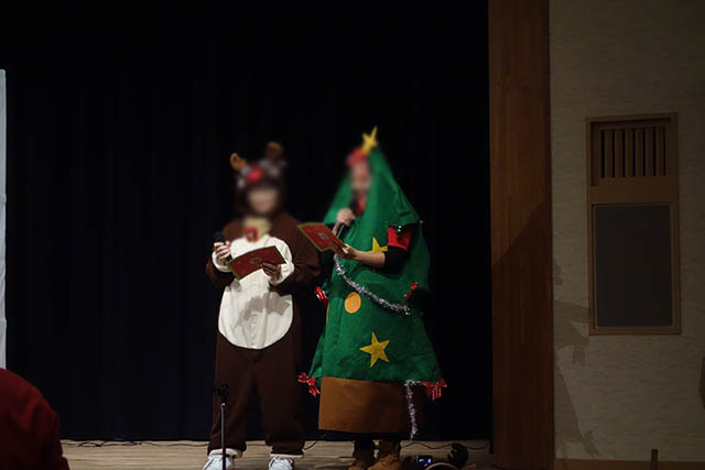 クリスマス会なのでトナカイとクリスマスツリーが司会してくれてるよ!w