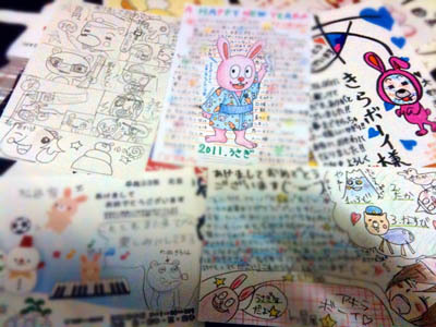 年賀状、可愛いイラストと文字でびっしりで、どれもラブレターみたいだねぇw(*゜o゜*)w