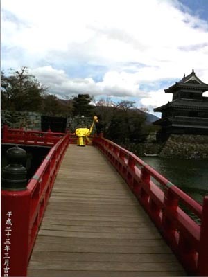 橋を渡り城に入るキリンw