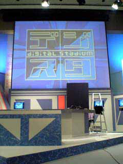 写真でスクリーン下に黒い台があるんやけど、そこに立ってアニメ漫才させてもらいました。