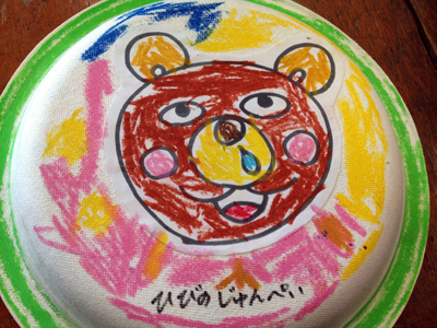 先日の岐阜県可児市の幼稚園で子ども達が一人一人作ってくれたタヌキチくんのお皿が、