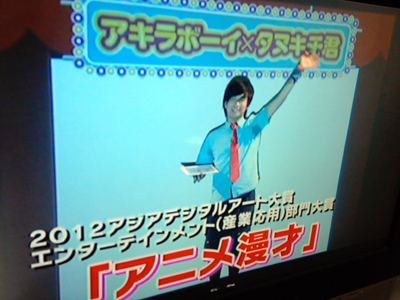 本日放送!NHK総合「デジタルアートon TV FUKUOKA」2013年4月11日 先日九州NHKで放送された番組が全国ネットで再放送されますヾ(◍’౪`◍)ノ゙ 4月11日(木)午後3:15~3:58 NHK総合放送 「ろーかる直送便」九州沖縄特集「デジタルアートon TV FUKUOKA」 に出演してますー☆ みんな見てね! 楽しそうやねw タヌキチ「そやね~!」 ブログPosted by akiraboy