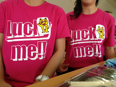 私たちのピンクのTシャツ、オリジナルで作ったのですが、『Lucky me!!』というTシャツのメッセージ通り、アキラボーイさんにお越しいただき、まさに『lucky』な私たちになりました!