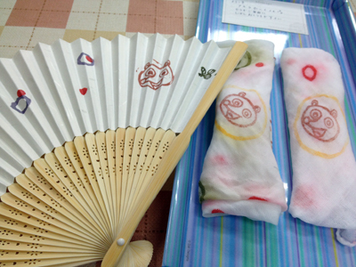 扇子とお手拭きもタヌキチくん仕様にw